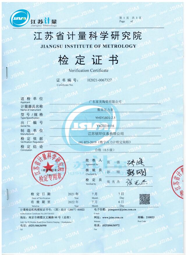 精密級儀表、儀器設備附帶檢測報告