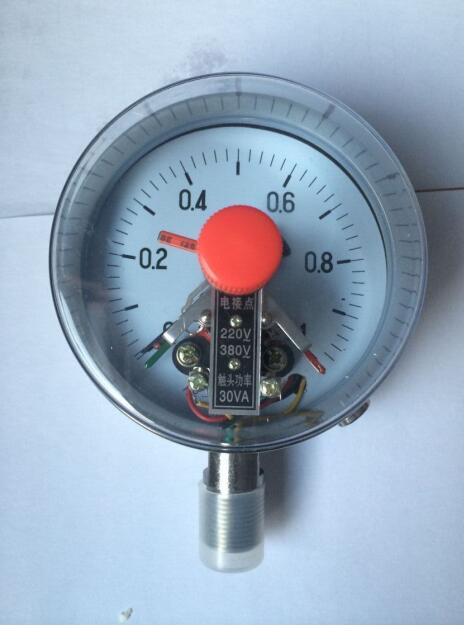 壓力表由測(cè)量系統(tǒng)、指示系統(tǒng)、磁助電接點(diǎn)裝置、外殼、調(diào)整裝置和接線盒(插頭座)等組成。一般電接點(diǎn)壓力表是用于測(cè)量對(duì)銅和銅合金起腐蝕作用的氣體、液體介質(zhì)的正負(fù)壓力,不銹鋼電接點(diǎn)壓力表用于測(cè)量對(duì)不銹鋼不起腐蝕作用的氣體、液體介質(zhì)的正負(fù)壓力并在壓力達(dá)到預(yù)定值時(shí)發(fā)出信號(hào),接通控制電路,達(dá)到自動(dòng)控制的報(bào)警的目的。