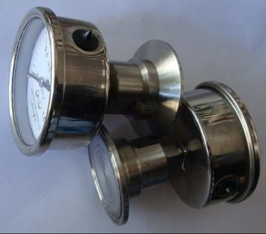 軸向衛(wèi)生型隔膜壓力表的耐蝕性可通過合適的選擇與測量介質(zhì)接觸部分的隔膜、法蘭及密封圈的材料來保證。