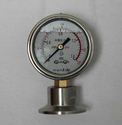 衛生型耐震隔膜壓力表表殼內有灌充液的機械指針式壓力表,或者于表殼內有灌充液并帶阻尼器的機械指針(或回轉標度盤(pán))式壓力表。