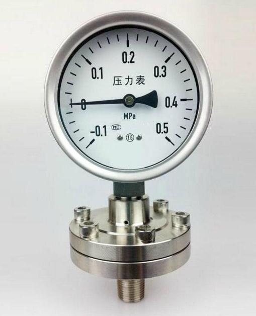 隔膜壓力表的耐蝕性可通過(guò)適合的選擇與測量介質(zhì)接觸部分的隔膜、法蘭及密封墊圈的材料來(lái)保證。